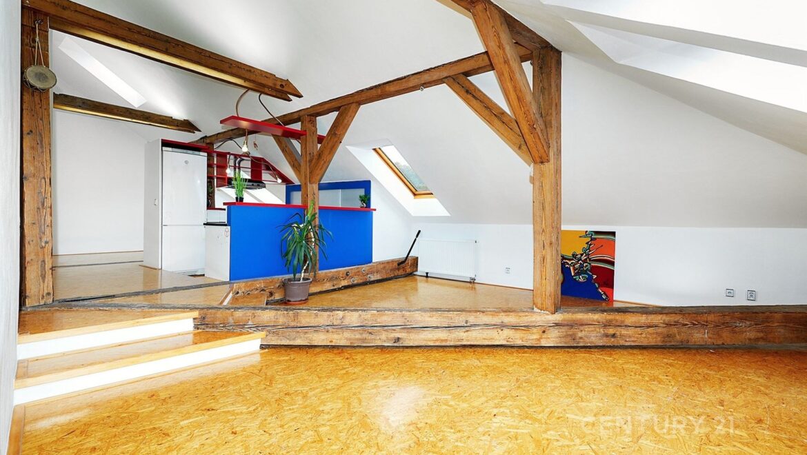 Nabízíme k pronájmu prostorný, slunný půdní byt o rozloze 117 m2, situovaný ve 3. patře historického, kompletně zrekonstruovaného domu bez výtahu v ul. Holečkova. Interiér bytu byl navržený architektem a citlivě kombinuje přiznané půdní trámy s moderními prvky a netradičním členěním prostoru. Dispozice a vybavení: • Dominantou bytu je velkorysý otevřený prostor (67 m2), který slouží jako obývací pokoj, jídelna, kuchyň a pracovna nebo třeba herna. • Kuchyně: Kuchyňská linka je plně vybavena nová myčka a nová elektrická varná deska. Součástí je také již používaná elektrická trouba a lednice. • Ložnice: Dvě samostatné ložnice. Specifikem jsou vestavěná pódia s úložným prostorem, určená pro přímé umístění matrací. V jedné z ložnic se nachází výklenek praktická šatna. • Koupelna a WC: Moderní koupelna s vanou, sprchovým koutem a pračkou. Díky dvěma oknům má dostatek denního světla. Stropy jsou nově vymalovány bílou barvou místo oranžové na fotografii. Toaleta je oddělená. • Terasa (12 m2): Soukromá terasa s autentickým výhledem přímo přes hřebeny střech okolních domů. Je přístupná po úzkých schodech z předsíně a je nově částečně zastíněna (není na fotografii). V předsíni je dále samostatná komora. • Sklep: V suterénu domu je možno využívat uzamykatelný sklepní prostor (cca 5m2). Technické parametry: • Vytápění: Vlastní plynový kotel v koupelně zajišťuje ohřev vody i vytápění. • Podlahy: Praktická a designová lakovaná OSB deska v celé ploše bytu. Interiér je výškově členěný (víceúrovňová plocha, schody). • Okna: Střešní okna s novým těsněním a instalovanými roletami pro zajištění tepelného komfortu a soukromí. Lokalita: • Bydlení v těsné blízkosti Zahrad Kinských, Petřínských sadů a parku Sacré Coeur. Kompletní občanská vybavenost v docházkové vzdálenosti – OC Nový Smíchov (metro B Anděl), restaurace, kavárny a výborná dopravní dostupnost (pěšky 3min tramvaj. zastávka Bertramka). Měsíční náklady: • Nájemné: 28.000 Kč • Služby domu: cca 1.000 Kč / osoba • Energie (elektřina a plyn): přepis na nájemníka (cca 4.000 Kč / 2 osoby) • Vratná jistota 35.000 Kč, provize RK 1 x nájem + 21 % DPH Byt je volný a připraven k okamžitému nastěhování. Pokud hledáte originální, věcně řešený prostor s výhledem „ze střechy“, domluvte si prohlídku.