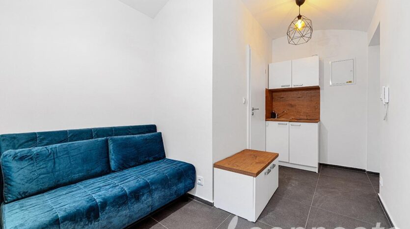 – plně zařízeno nábytkem (gauč, stůl, skříňky)