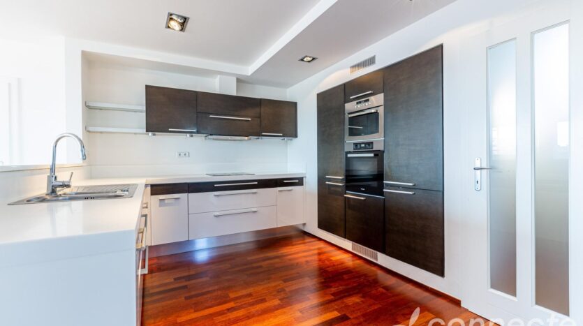 – Moderní kuchyně s vestavěnými spotřebiči a navazující spižírna
