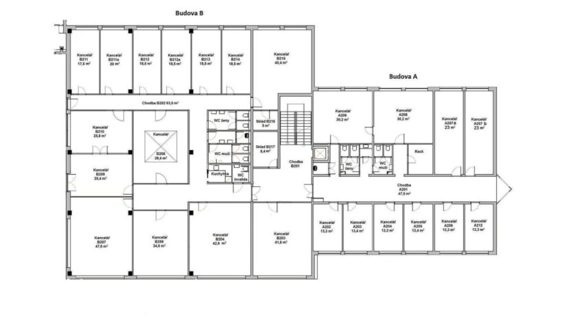 K této kanceláři si lze pronajmout sklad 11,3 m2 na 3NP.