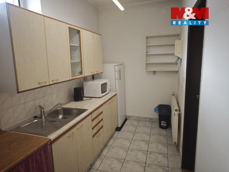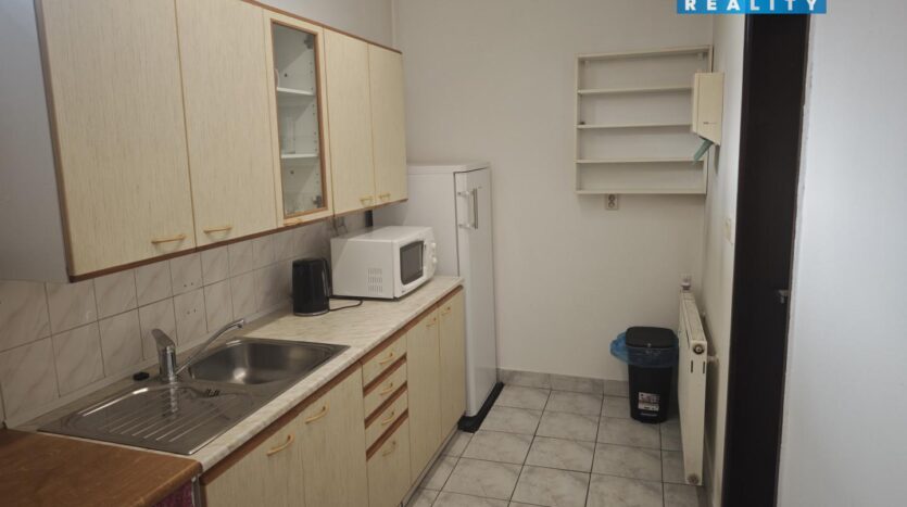 Kancelář je částečně zařízená, dále má k dispozici sdílenou kuchyňku, dámské a pánské toalety. Teplá voda je zajištěna bojlerem a vytápění probíhá prostřednictvím radiátorů.