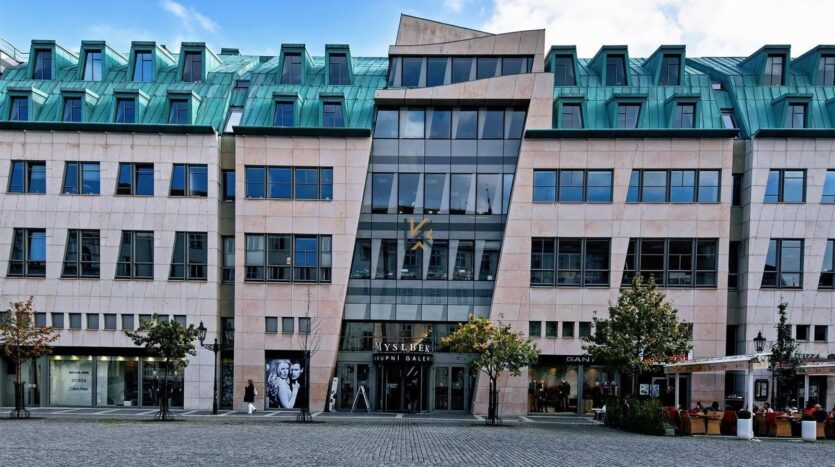 Budova Myslbek je koncipována jako komplex obchodů věhlasných značek, které lze naleznout v podzemí, přízemí, v prvním patře a kanceláří umístěných v následujících horních patrech. Tyto lukrativní kancelářské prostory jsou však od dění v Nákupní Galerii Myslbek odděleny samostatnými vchody, což demonstruje nezávislost existence zmiňovaných funkcí objektu. Nabízené kancelářské prostory se vyznačují nejvyšším mezinárodním standardem a dostatečným přísunem denního světla. Velkoplošné kanceláře poskytují nájemníkům volbu v podobě rozdělení prostor podle jejich potřeb. V roce 2013 prošly společné prostory, spolu s recepcí, sociálním zařízením a výtahovým lobby rozsáhlou rekonstrukcí. Myslbek svou unikátní polohou v podstatě propojuje ulici Na Příkopě s Ovocným trhem, čímž se stává pomyslným průchodem mezi Starým a Novým Městem. Toto obchodní a administrativní centrum je tudíž umístěno ve vysoce prestižní historické lokalitě v Praze a to v jeho jádru. Pěší průchod z historické části Prahy do rušné obchodní části je umožněn skrze luxusní pasáž v přízemí komplexu s rozmanitou nabídkou obchodů a restaurací. Budova Myslbek právem profituje ze své luxusní polohy v samotném centru města a je tudíž schopna všem svým uživatelům nabídnout vynikající dopravní dostupnost v podobě rovnou dvou tras metra (stanice “Můstek” – trasy “A” a “B”) a několika tramvajových linek v maximální vzdálenosti 400 m. Přímé napojení na pražský okruh zajišťuje snadnou návaznost na automobilovou dopravu.