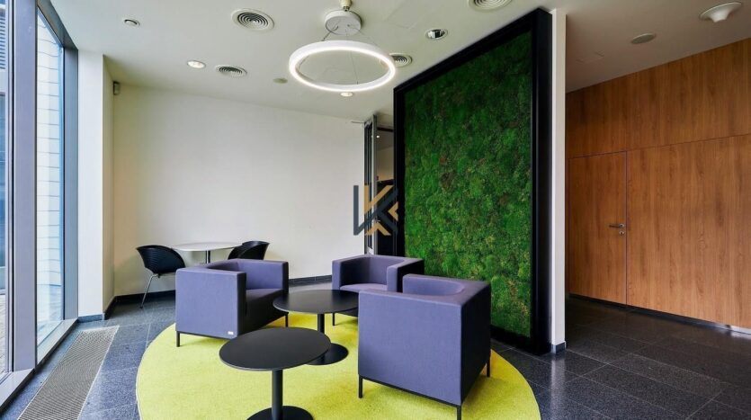 Elektrické venkovní žaluzie, otevíratelná okna. Uprostřed komplexu se nachází nádvoří plné zeleně, restaurací a kavárnou. Recepce s ostrahou 24/7 a lobby. Možnost parkování v budově vč. parkování pro návštěvy. Zastávka MHD hned před budovou, metro (B) Nové Butovice pouze 5 min. chůze.
