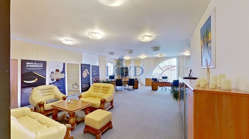 Kanceláře mohou být na přání a v ceně nájmu vybaveny nábytkem, na podlahách jsou koberce.