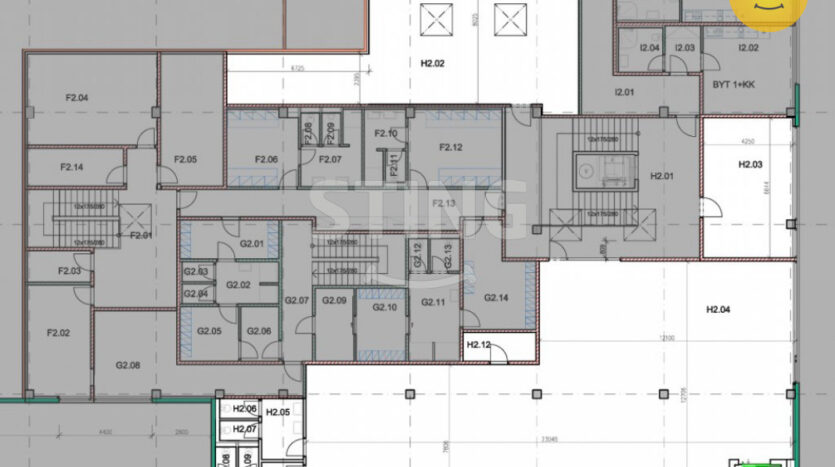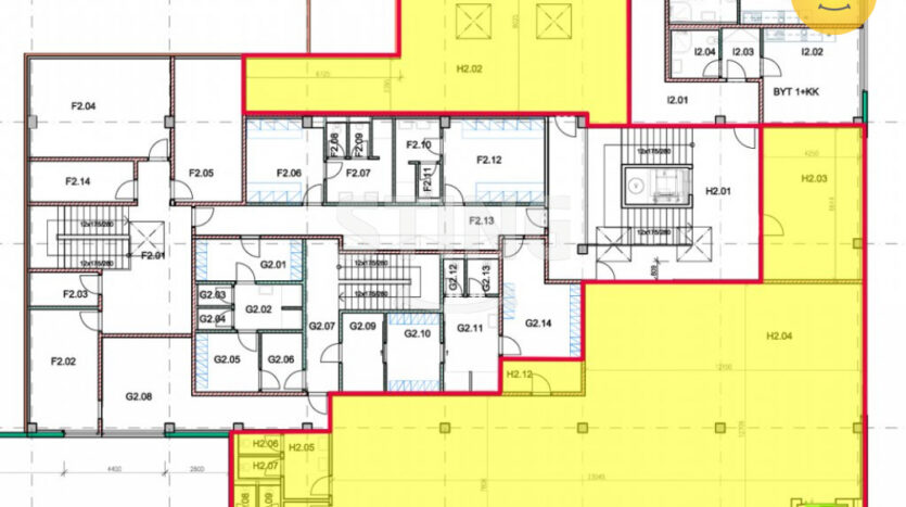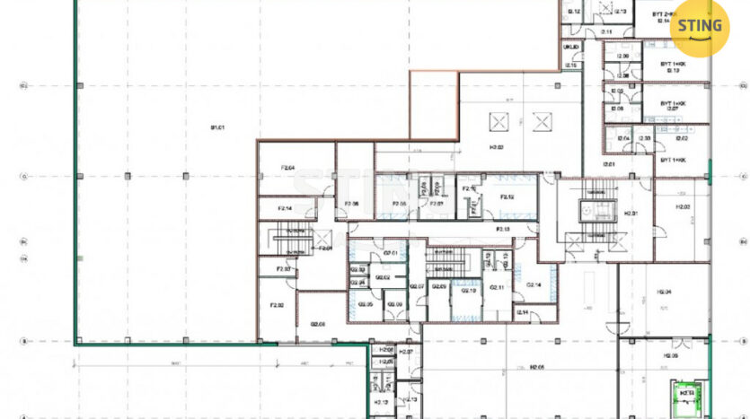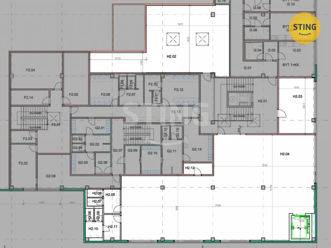 H2.02 – zázemí pro zaměstnance, kancelář, skladové prostory (se světlíky, u schodiště a výtahu)