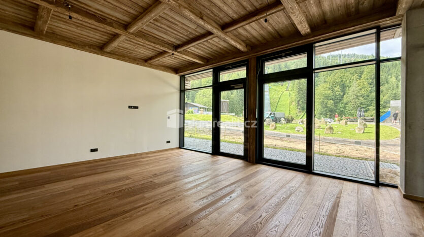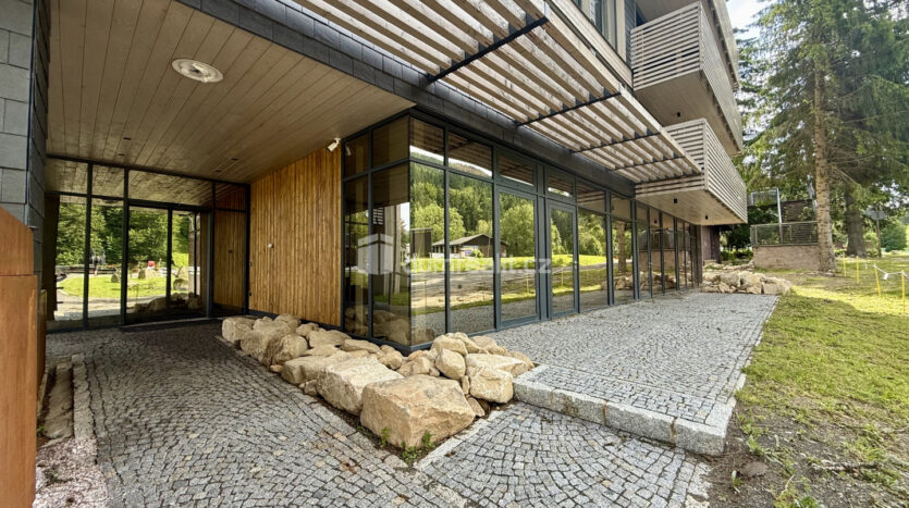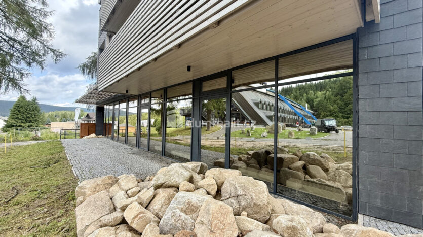 pronájem moderní komerční prostor o velikosti 45 m2 s vlastní terasou, umístěný v novostavbě přímo v centru Harrachova – jednoho z nejvyhledávanějších horských středisek v České republice.