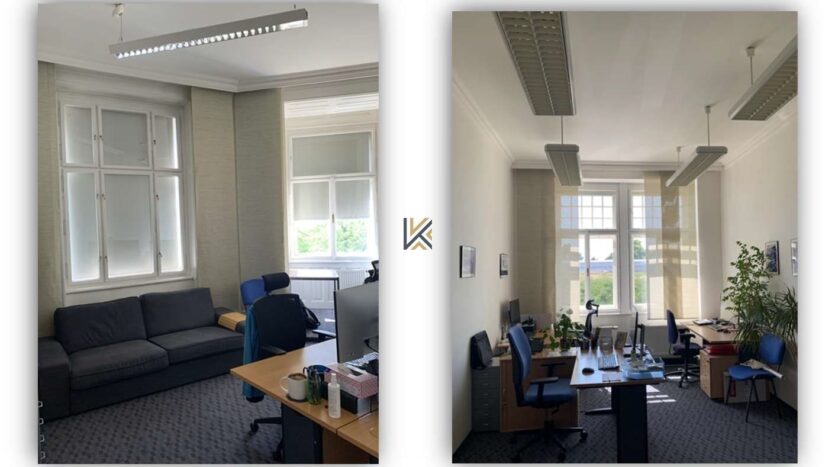 Nabízíme pronájem kancelářských prostor 650 m2, v 1. a 2. patře secesní vily Agora Flora Villa, Praha 3. Prostory budou volné od 1.4.2026. Jsou vhodné pro rekolaudaci na ordinace lékařů.