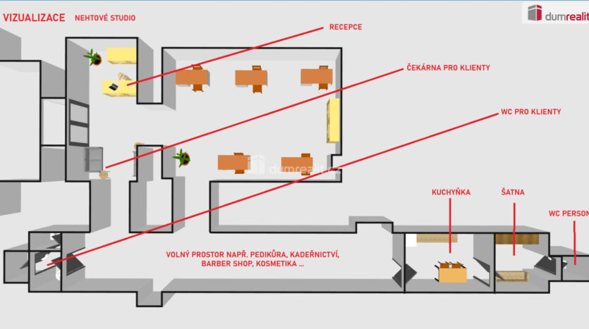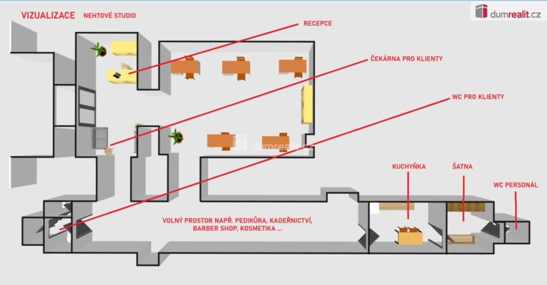 Dumrealit.cz Vám zprostředkuje pronájem komerčního prostoru v suterénu hl. nádraží Brno, spojka mezi obchodním centrem Vaňkovka a centrem města Brna. Nabízený prostor má celkem rozlohu 93m2, rozdělen ve dvou propojených prostorech 51m2 a 42m2. Sociální zázemí (WC) se nachází v menším prostoru, ale dá se rozšířit a vytvořit i kuchyňku nebo zázemí dle požadavků nájemníka. Jedná se o prostor, kde denně projde cca 140.000 lidí. Jednotka je aktuálně kolaudována jako obchod, ale není problém provést rekolaudaci na jiný záměr podnikání (nehtové studio, manikúra/pedikúra, kadeřnictví, kosmetika, lehký gastro provoz…aj.) Nabízený prostor bude procházet zásadní rekonstrukcí, kdy bude možno rekonstrukci a úpravy přizpůsobit potřebám nájemníka dle daného oboru podnikání. Rekonstrukce bude spočívat v odvlhčení, nové omítky, nové podlahy, odpad, voda, elektroinstalace, topení a vzduchotechnika. Zásobování je možné z parkoviště pošty, přes první nástupiště. Dále nabízíme možnost pronájmu parkovacích míst. Provedení rekonstrukce se odhaduje na 6-8měsíců od podepsání nájemní smlouvy a splnění podmínek z ní vyplívajících. Při podpisu smlouvy bude požadováno uhradit nájemné, zálohy, kauci a provizi RK. Předpokládané zahájení provozu nového nájemníka 1.7.2026.