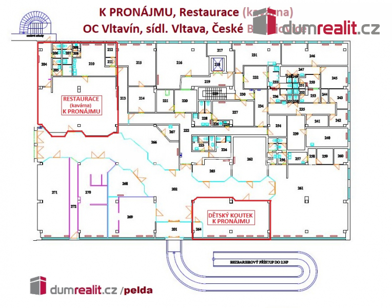 Dumrealit.cz Vám zprostředkuje pronájem komerčních prostor zkolaudované na restauraci s terasou v OC Vltavín na sídl. Vltava ve městě České Budějovice. Prostory lze využít i na kanceláře nebo na skladování. Cena pronájmu je 24.000,- Kč/měsíc + meřitelné energie ve výši 7.800,- Kč/měsíc bez DPH). Sociální zázemí (páni – dámy) je v prostoru restaurace. Možnost využití vlastního zadního vchodu. K dispozici 2 parkovací stání v ceně pronájmu. Více informací Vám poskytne realitní makléř Tomáš Pelda. Ev. číslo: 644993. Bližší informace Vám sdělí Pavel Čada, 737 249 931, atempo@dumrealit.cz