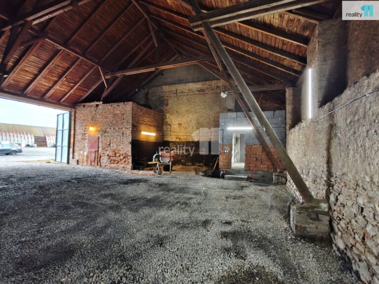 V objektu je zavedena jak elektřina, tak voda. Elektroměr a vodoměr je každý zvlášť pro tyto prostory. Nová vrata o rozměrech š:4,4 m / v: 3,9. Plocha je vyrovnaná a zpevněná štěrkem. Výška od země k vazníku 5,85 m.